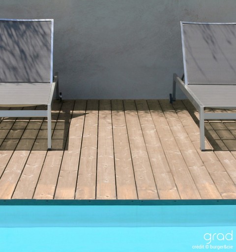 Le Thermopin est un bois tendre, modifié thermiquement pour augmenter sa stabilité. D’une couleur miel avec des petits nœuds plus sombres, il donnera un look chaleureux et traditionnel à votre terrasse.